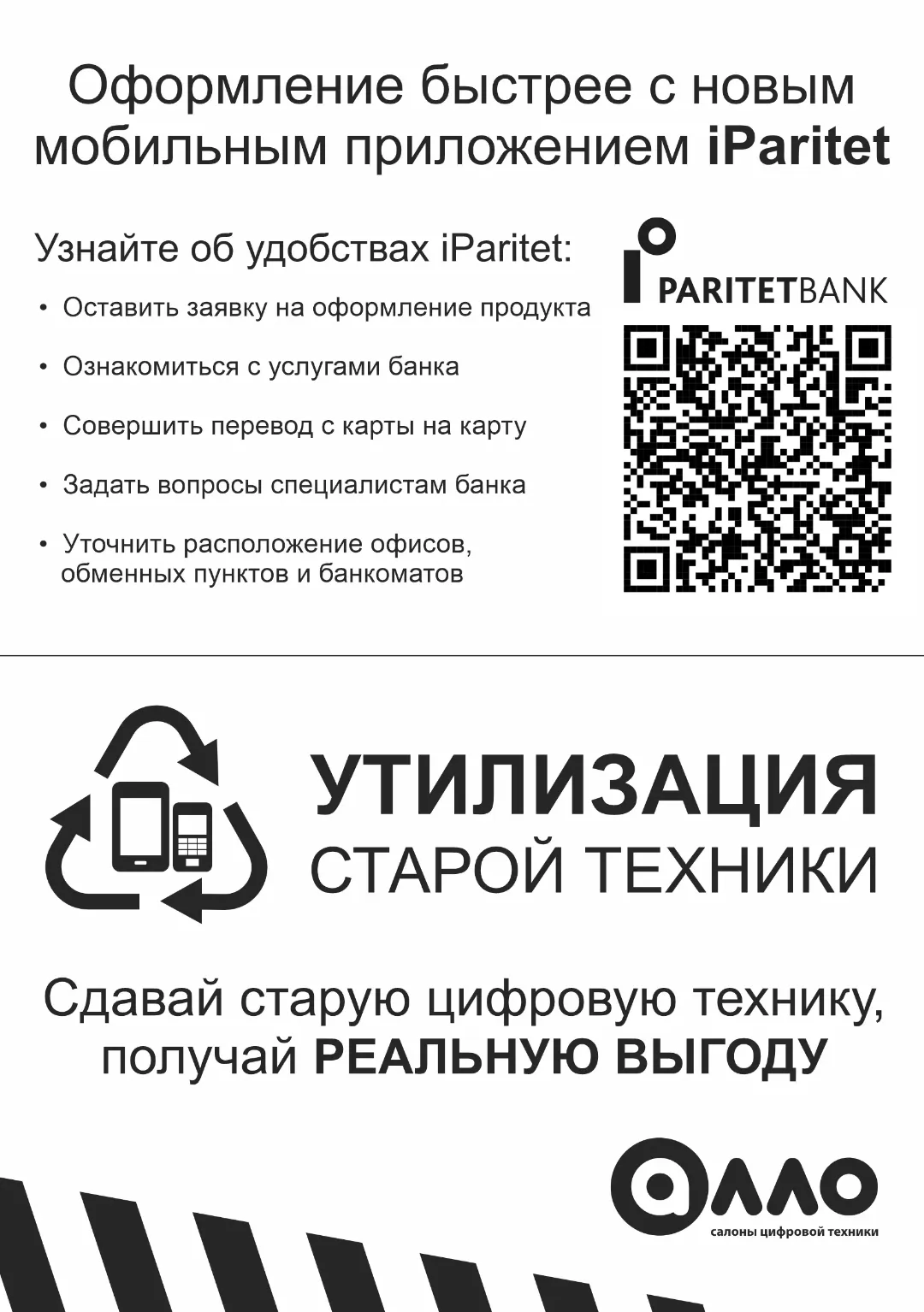 Макет для печати бумажных плакатов формата А4, А3, А2, а также бэклитов для световых рамок. Размещались внутри и снаружи торговых объектов, выполняли роль дополнительного оповещения о проходящей акции/выгодном предложении.